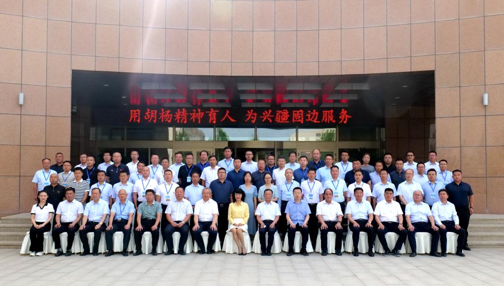 仪式结束后,大家在胡杨干部培训中心楼门口合影。