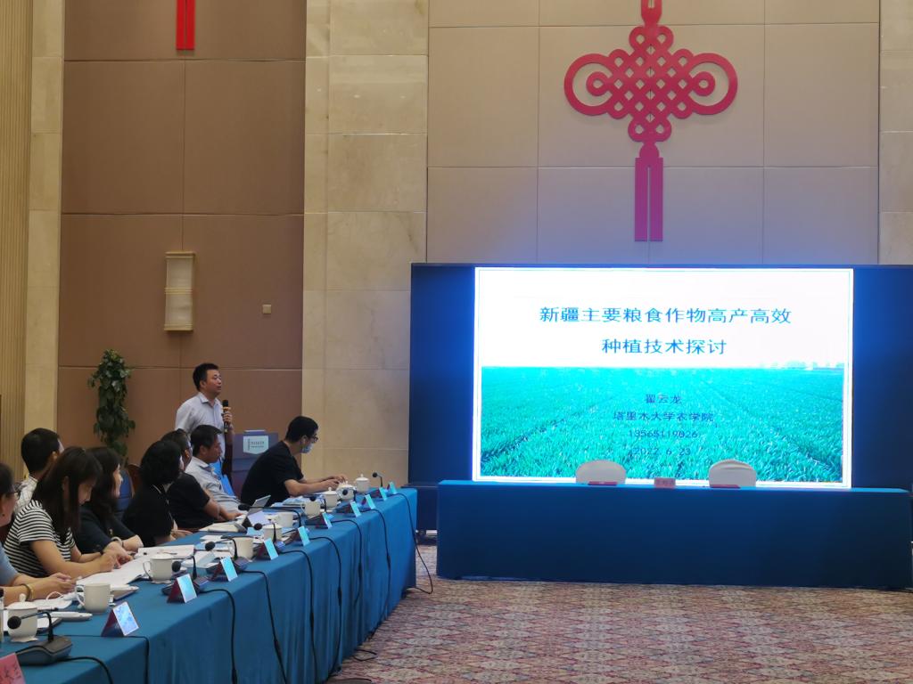 下午,阿克苏地区各县市及龙头企业与专家齐聚一堂,农学院副院长翟云龙教授做了“新疆主要粮食作物高产高效种植技术探讨”的发言,同时阐述了塔里木大学与阿克苏地区企业对接“有成果、有人才、地处阿克苏”的三大优势。