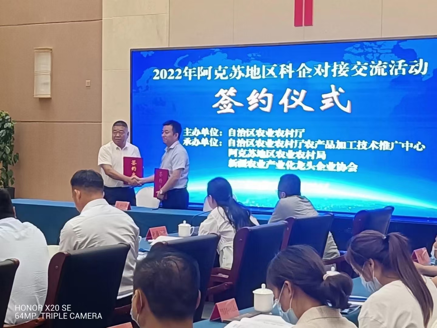 为推动科企合作,加快引智工程实施,着力破解产业发展短板弱项,加快提升产业发展科技水平,助力培育产业发展新动能,由自治区农业农村厅主办,自治区农产品加工技术推广中心、阿克苏地区农业农村局、新疆农业产业化龙头大企业协会承办本次阿克苏地区科企对接活动。塔里木大学作为高等院校代表受邀参加此次活动。