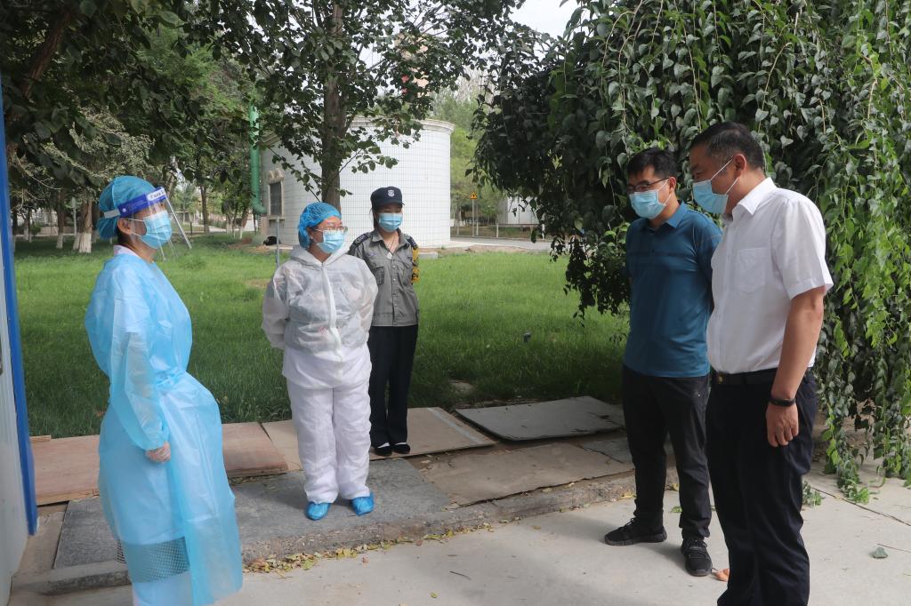 校领导先后来到新校区(东扩区)、北门、南门、东门、校医院、东区小市场、校内快递站、胡杨干部培训中心等处,认真查看测温登记、信息核查、人员管控、应急预案等工作开展情况,对从严从紧落实落细疫情防控措施提出要求。