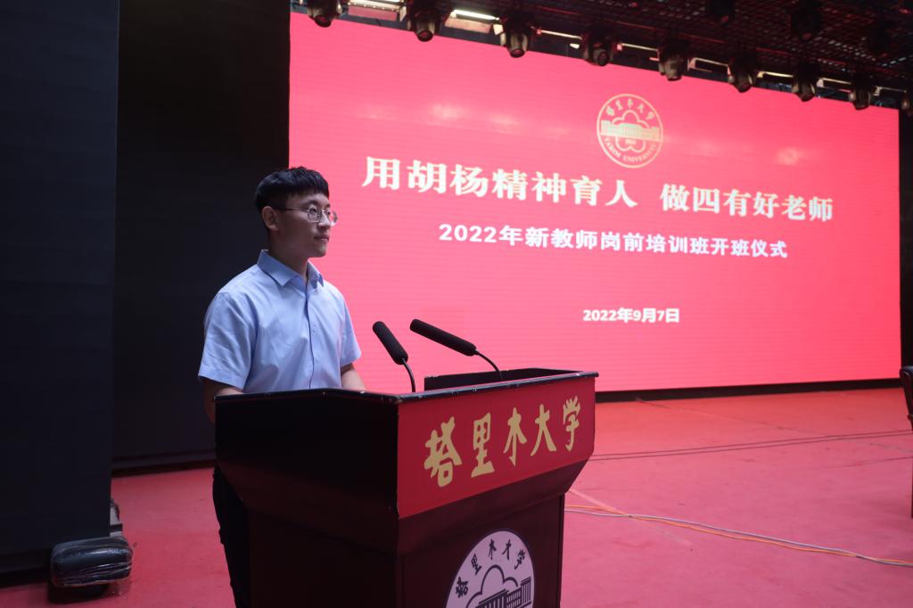 新教师代表、食品科学与工程学院谢兵发言表示,从踏入校园,看到校园的美景,看到家居齐全,宽敞明亮的新家,人未至,暖先达,感受到了学校对新教师无微不至的关心关爱。定会认真参加培训学习,努力提升教书育人能力,落实好立德树人根本任务。