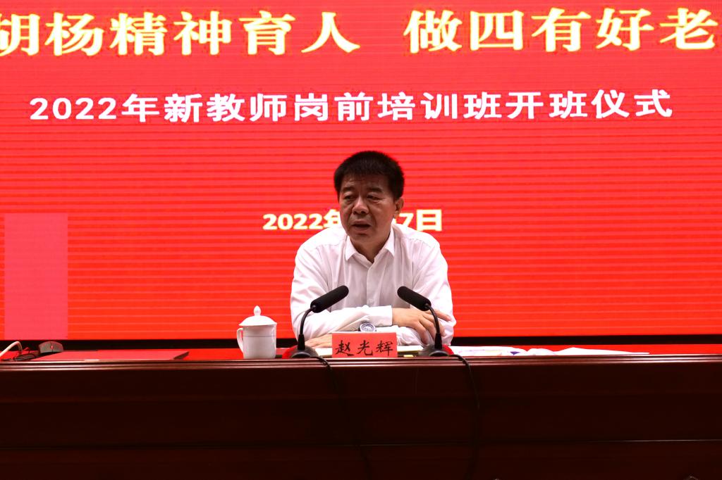 赵峰华宣读了《“用胡杨精神育人、做四有好老师”——2022年新教师岗前培训工作实施方案》。