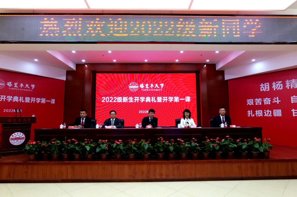 赵光辉向全体2022级新同学作了题为《把握时代脉搏,踔厉奋发,争做新时代的有为胡杨青年》的开学第一课。代表学校党委向全体怀揣梦想的新同学表示最热烈的欢迎,向精心培育大家的家长表示最衷心的感谢。介绍了塔里木大学的不平凡历史、不平凡使命、不平凡贡献,阐述了新时代胡杨青年肩负的重要历史使命。希望全体新同学把握时代脉搏,顺势而为,书写人生华章;厚植爱国情怀,蓄力勃发,担当青春使命;高度重视学习,精进不休,锤炼出色本领;增强文化自信,踔厉奋发,争做胡杨青年。砥节砺行,践行社会主义核心价值观。传承胡杨精神,做新时代的胡杨青年。