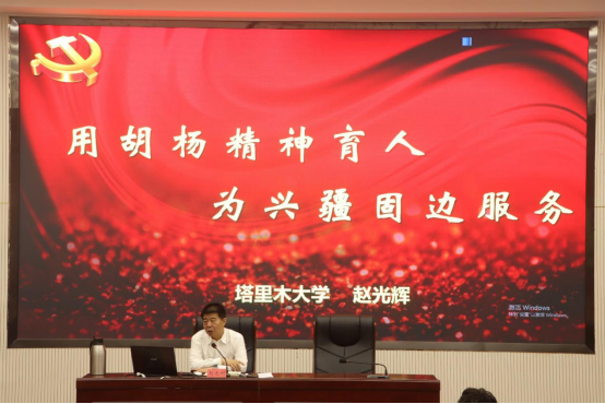 9月24日上午,党委书记赵光辉为学校2022年秋季学期党员发展对象培训班,作了题为“用胡杨精神育人,为兴疆固边服务”的开班第一讲。
