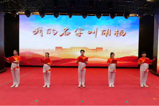 诗朗诵《我的名字叫胡杨》,深情演绎了塔大人赓续红色血脉,践行胡杨精神,献身边疆教育事业的家国情怀。