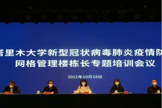 10月18日下午,塔里木大学举行新型冠状病毒肺炎疫情防控网格管理楼栋长专题培训会议。党委副书记、校长张爱萍主持会议并讲话。副校长张利莉,党委常委、副校长赵峰华、于军、石长青出席。全体处级干部和楼栋长参加。会议在大学生活动中心召开。
