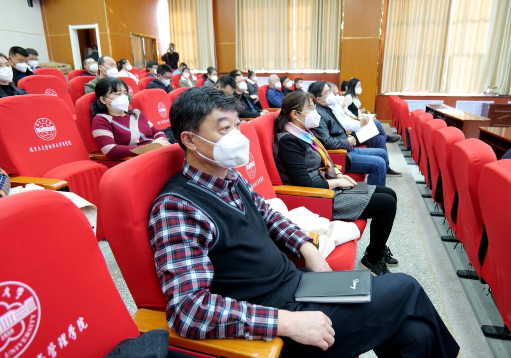 党委书记赵光辉,党委副书记、校长张爱萍,副校长张利莉,党委常委、副校长曲义勇、赵峰华、石长青,及全校处级干部、师生员工通过线上线下方式听取报告。石长青主持报告会。报告会在新文科楼504设主会场,在各学院、各党支部设立分会场。