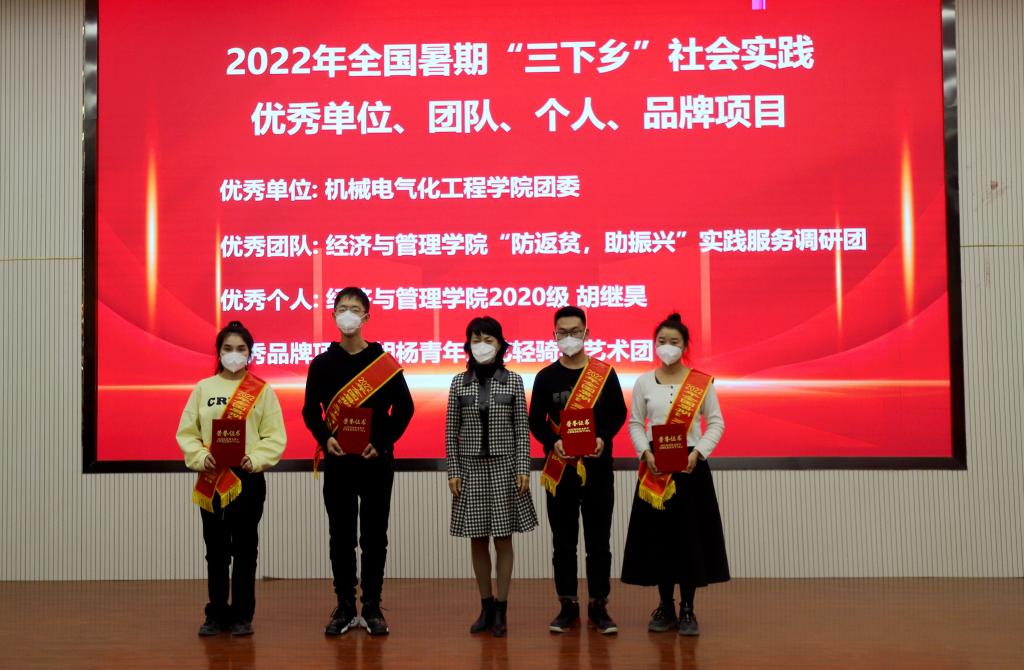 大会对荣获优秀指导教师、优秀单位、团队、个人、品牌项目进行了表彰。机械电气化工程学院团委、经济与管理学院“防返贫、助振兴”实践服务调研团、胡继昊同学、胡杨青年文艺轻骑兵艺术团荣获全国表彰;5个单位、9支团队、9名个人、4个品牌项目荣获兵团表彰;5个单位、83支团队、90名指导教师、319名个人荣获学校表彰。