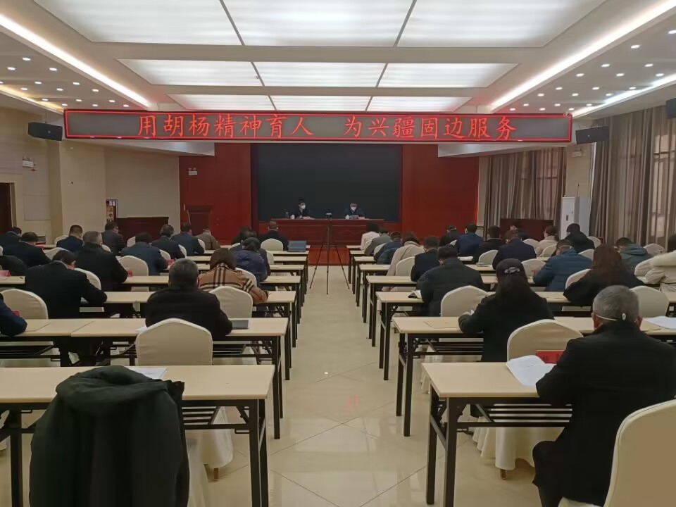 党委副书记、校长张爱萍,党委常委、副校长曲义勇、于军、石长青出席。全体处级干部参加。会议在胡杨干部培训中心二楼会议厅举行。(文/董建伟)