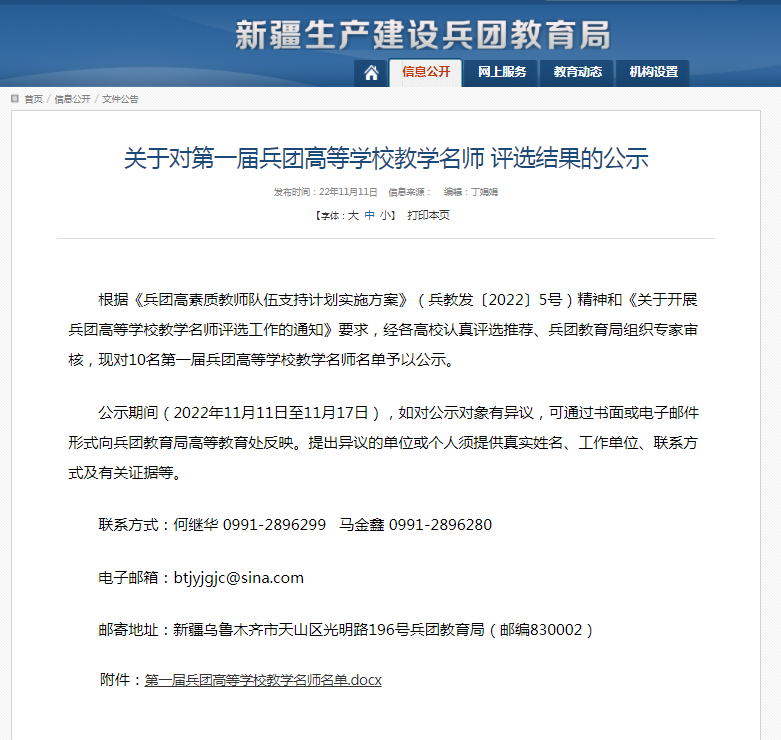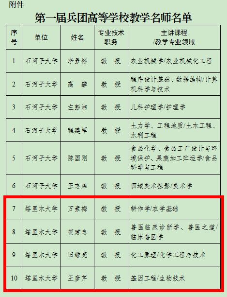 ⑦ 4名教师荣获第一届兵团高等学校教学名师