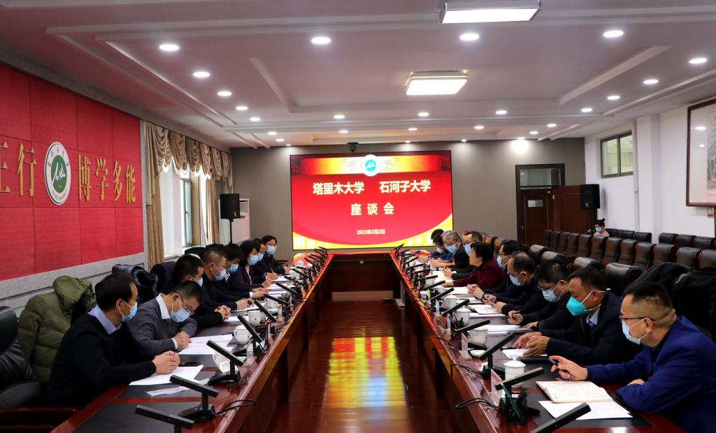 2月2日,塔里木大学党委书记赵光辉,党委副书记、校长张爱萍赴石河子大学访问交流,受到石河子大学党委书记柴真,党委副书记、校长代斌,党委常委、副校长马春晖等领导热情接待。两校召开座谈会。双方有关学院、部门主要负责同志参加座谈。座谈会由代斌主持,在石河子大学行政楼第五会议室召开。