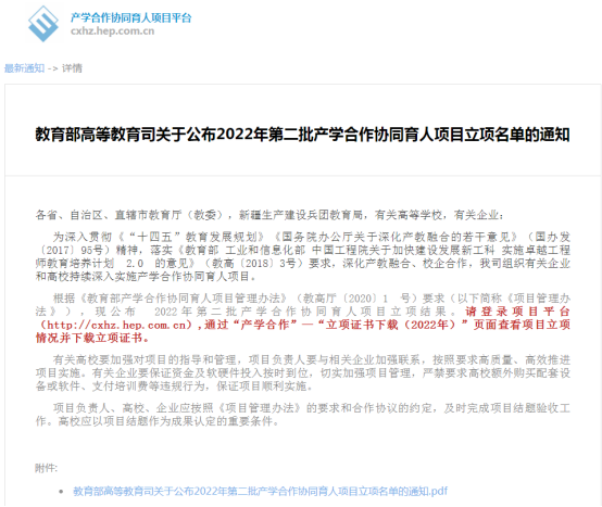近日,教育部下发《教育部高等教育司关于公布2022年第二批产学合作协同育人项目立项名单的通知》(教高司函〔2023〕1号),我校“法学智能一体化虚拟仿真教学实验室建设”等6个项目获批立项。