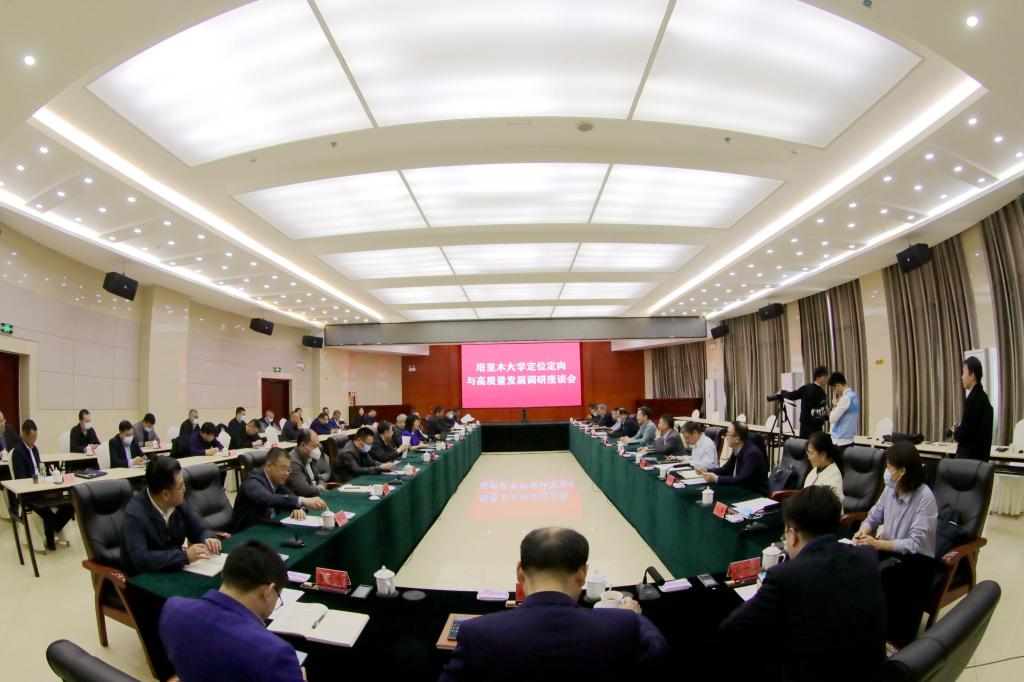 3月16日上午,塔里木大学定位定向与高质量发展调研论证会召开。专家组组长、北京大学教育学院院长阎凤桥教授,专家组成员、中国矿业大学副校长、塔里木大学副校长(援疆)赵峰华教授,北京大学怀柔科学城校区筹建办公室主任贺飞、烟台大学姚新喜教授、教育部学校发展规划中心汪旸研究员、八师石河子市科技局副局长刘振华,塔里木大学党委副书记、校长张爱萍,党委常委、副校长曲义勇、于军,石河子大学党委常委、副校长叶含春,以及石河子大学有关部门同志、塔里木大学相关部门、学院负责同志及专家参加。调研论证会由于军主持,在胡杨干部培训中心二楼报告厅举行。