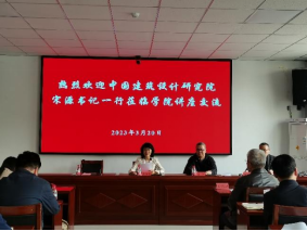 3月20日下午,中国建筑设计研究院有限公司董事长、总建筑师宋源教授,国际业务事业部总经理、国际工程院院长魏篙川教授一行来校访问交流,受到我校党委副书记、校长张爱萍,党委常委、副校长曲义勇等领导热情接待,并召开座谈会和学术报告会。建筑文化传播中心名誉主任张广源,国际工程院副院长、高级建筑师、一级注册建筑师徐翔天,建筑计划工作室主任、高级建筑师、一级注册建筑师任中,我校相关部门、学院负责同志、相关专业师生代表参加。座谈会、学术报告分别在行政楼五号会议室、水利与建筑工程学院1号会议室举行。