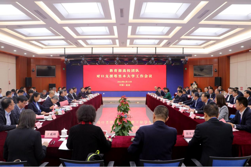 4月12日下午,教育部高校团队对口支援塔里木大学工作会议在中国农业大学举行。中国农业大学党委书记、中国工程院院士钟登华,教育部高等教育司一级巡视员宋毅,以及来自教育部8所团队对口支援高校和塔里木大学的校领导、有关部门、学院领导等出席会议。
