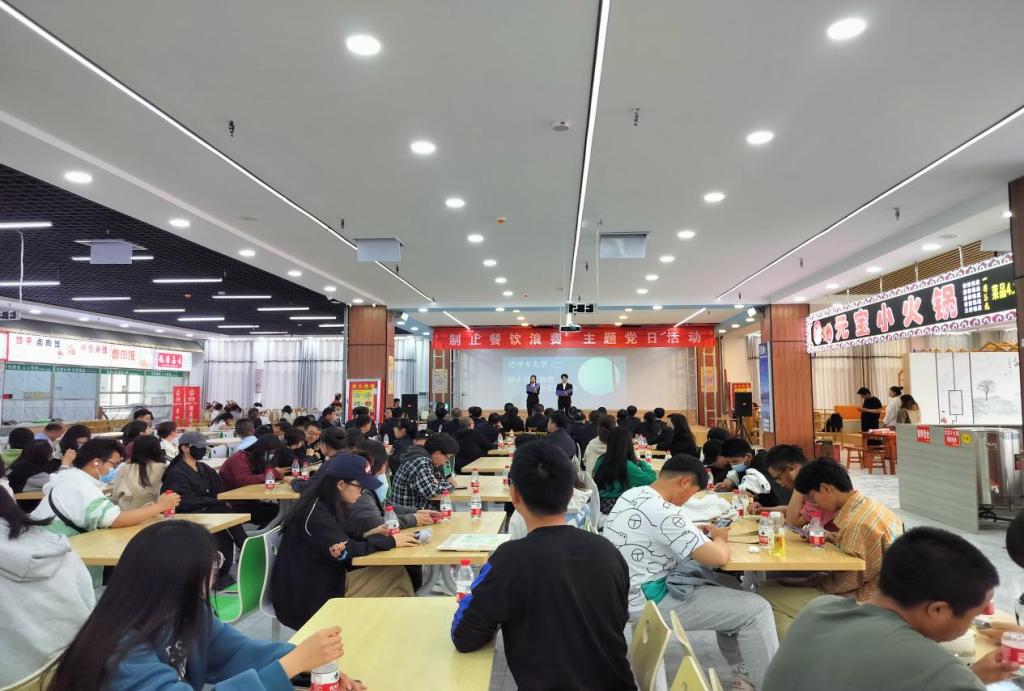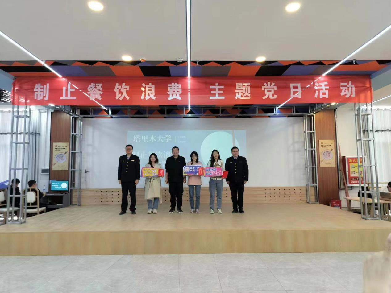 观摩会期间,动物科学与技术学院动科系学生党支部学生们举办以“制止餐饮浪费”为主题的党日活动,学生们表演的“光盘行动”情景剧《一食堂一角》、“我与光盘处‘CP’”食堂光盘合影抽奖活动、“光盘行动”主题作品展、“节约粮食、反对浪费”主题的团日活动和标语征集大赛等节目生动的展示学校后勤保障中心与师生们开展的“光盘行动”过程,充分展示塔大师生们珍惜粮食、厉行节约的优良品质。