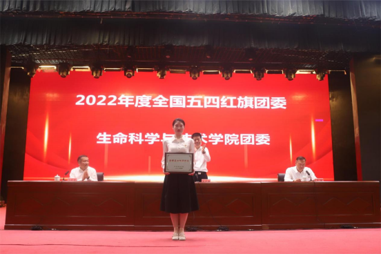 石长青宣读了《关于获得2022年度兵团级及以上先进集体和个人的表彰通报》 《塔里木大学关于表彰2022年度“五四红旗团委(团支部)”“优秀共青团员”“优秀共青团员干部”的决定》等。与会校领导为获奖集体和个人进行了颁奖。
