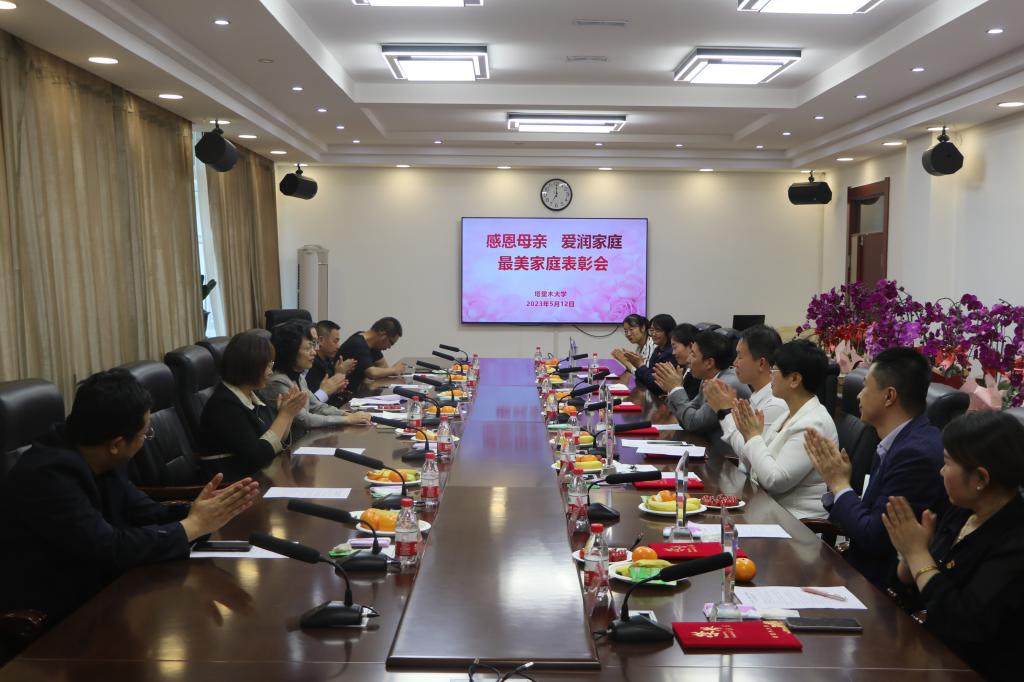 5月12日下午,塔里木大学在行政楼五号会议室举行庆祝母亲节“最美家庭”表彰会。党委副书记、校长张爱萍出席并讲话。党委常委、副校长赵峰华主持。相关部门、学院主要负责同志,全国、兵团、学校“最美家庭”代表参加。