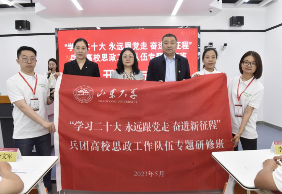 5月22日,兵团高校思政工作队伍“学习二十大 永远跟党走 奋进新征程”专题研修班在山东大学中心校区培训楼正式开班。塔里木大学党委常委、副校长石长青,兵团教育局思政处处长金亚丽,山东大学马克思主义学院党委书记马晓琳,山东大学马克思主义学院教师代表,兵团九所高校专职思政课教师、辅导员、学生思想政治教育工作者50余人参加开班仪式。