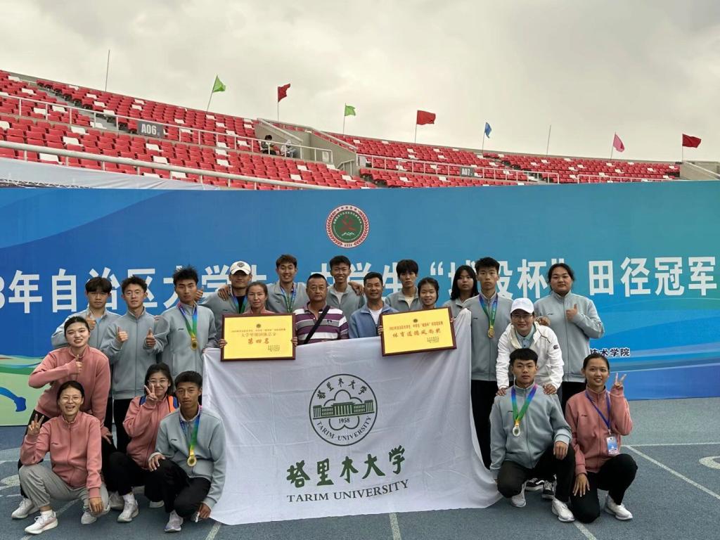5月24日至28日,2023年自治区大学生、中学生“城投杯”田径冠军赛在奎屯市体育场举行。塔里木大学代表队最终斩获5金4银4铜等19个奖项,荣获“大学甲组团体总分第四名”,体育工作部王军、帅伟被评为优秀教练员;孟迪被评为优秀裁判员;加依娜尔·叶尔买克奴尔、简悦跃被评为优秀运动员称号。