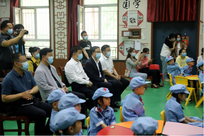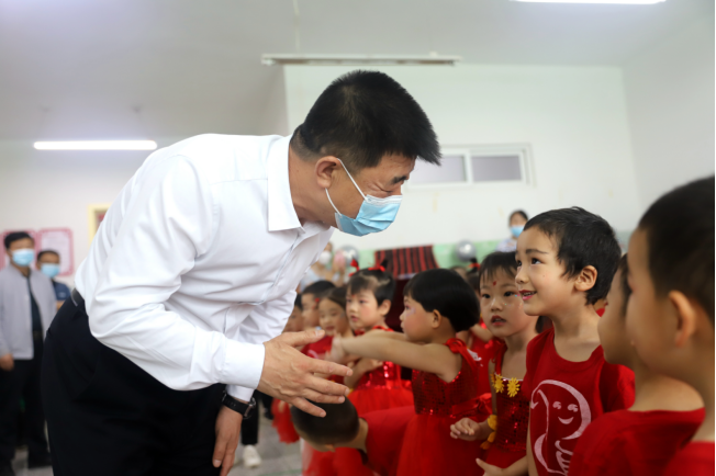 在“六一”国际儿童节之际,6月1日上午,党委书记赵光辉,党委副书记、校长张爱萍,党委常委、副校长赵峰华、石长青分成两组,来到学校小胡杨幼儿园,看望慰问幼儿园小朋友和教职工,向小朋友们祝贺“六一”国际儿童节快乐。