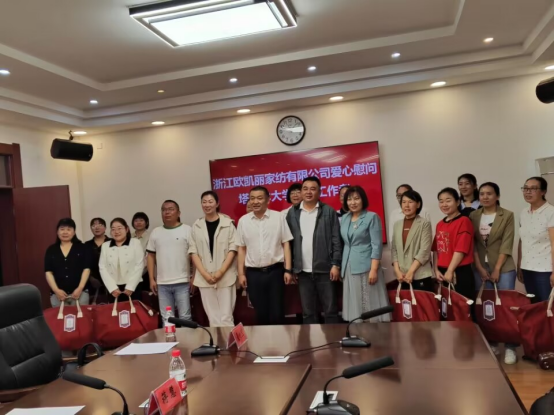 5月30日上午,新疆乌鲁木齐浙江商会秘书长李斌、浙江欧凯丽家纺有限公司市场部经理严晓华、第一师阿拉尔市总工会劳动经济权益保障部副部长温爱君一行来校爱心慰问我校教育工作者,并与我校党委常委、副校长石长青等领导进行座谈。校工会、党委教师工作部、科研处负责人,我校科技创新巾帼行动成员代表、各类先进教职工代表参加。会议在行政楼四号会议室召开。