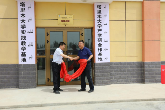 塔里木大学党委书记赵光辉,阿克苏地委委员、库车市委书记王鲁军共同为库车市驴科技小院揭牌。