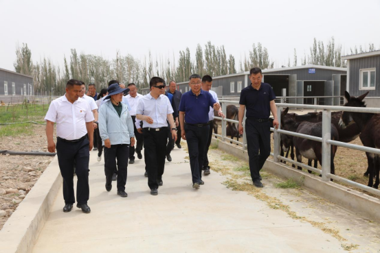 仪式后,赵光辉一行在王鲁军等领导陪同下参观了驴养殖基地、冰鲜驴奶和冻干驴奶粉生产情况,与合作社负责人、技术专家就合作社养殖规模、产奶量、饲养管理方式、产品定位开发等进行了交流。赵光辉还来到库车市现代农业科创中心实地调研。