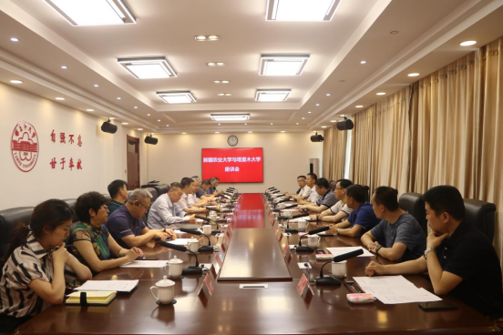 谢树青对我校取得的办学成就表示敬佩,介绍了新疆农业大学发展情况。他强调,两校在过去的长久合作中建立了深厚情谊,希望进一步加强沟通联系,寻求合作切入点,实现资源共享,优势互补,推进双方合作向纵深发展,为加快推进教育现代化、教育强国建设,谱写中国式现代化的新疆篇章发挥更大作用。