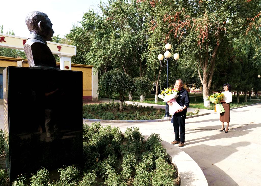 林民和校领导一起来到林海清雕像前,深切缅怀林海清校长,表达了全体师生对老一辈塔大人的崇敬和追思。