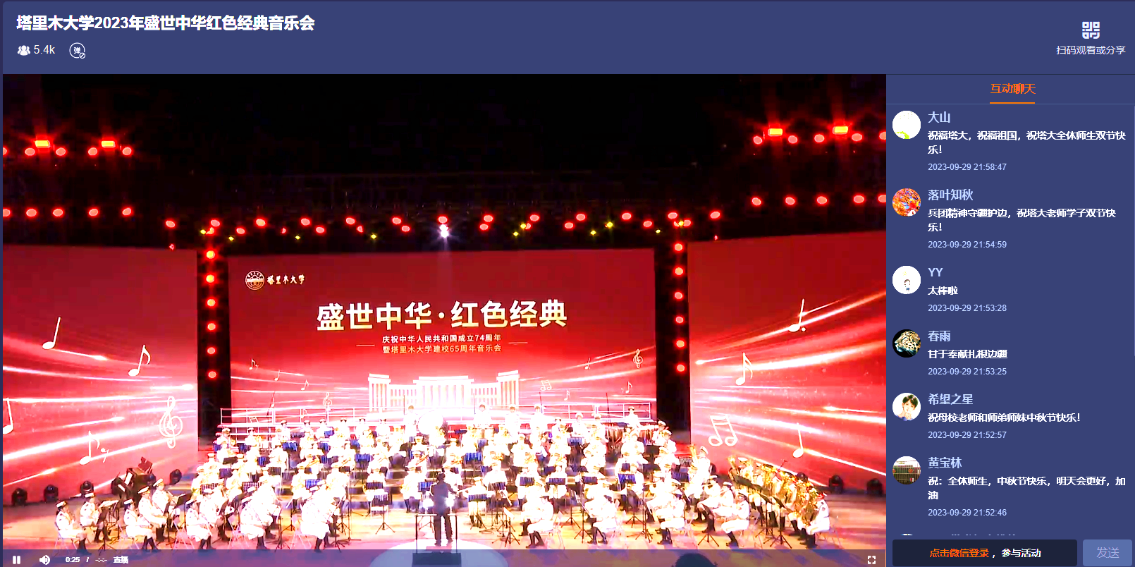 以艺术谱写初心,用音乐叩响使命。音乐会为全校干部、师生带来了一场全新的视听盛宴,呈现出精彩的“音乐之夜”。师生们纷纷表示,要用实际行动践行“请党放心,强国有我!”的铮铮誓言,为强国建设、民族复兴贡献胡杨青年的智慧和力量。