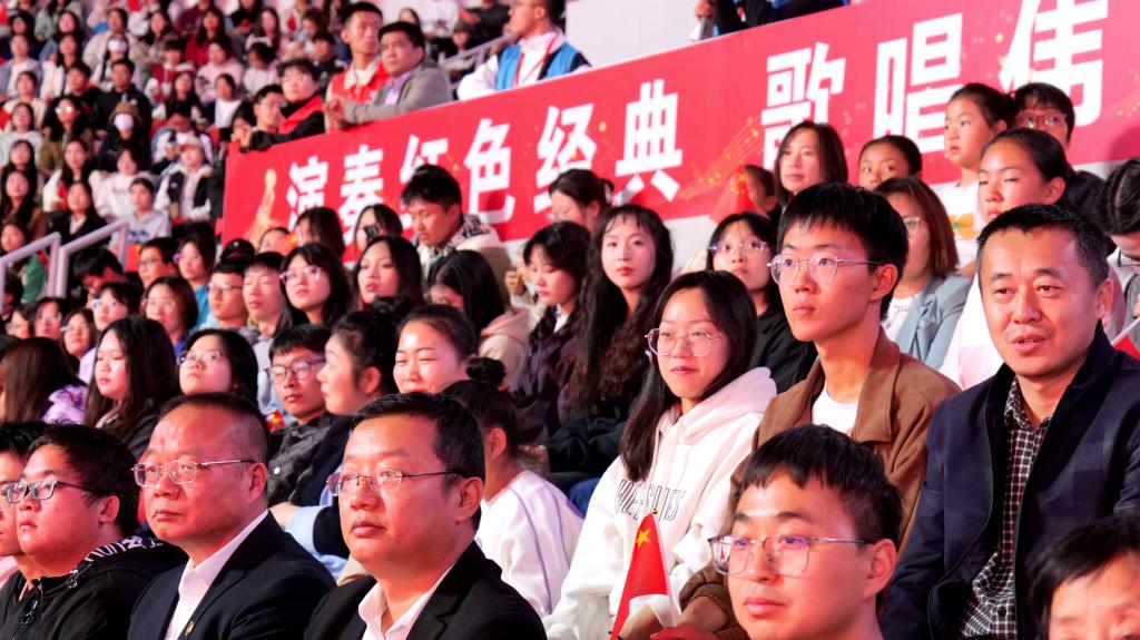 王震将军亲属王京川及家人、校领导赵光辉、张爱萍、曲义勇、于军、石长青、林松涛,全校处级干部、银龄教师代表、退休老教师代表、教师家属、师生代表近3000人在现场观看了音乐会。