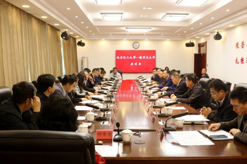 赵光辉欢迎刘贵芹一行的到来,感谢北京化工大学长期以来对塔里木大学的无私援助和鼎力支持,介绍了塔里木大学的不平凡历史、贡献、使命。希望两校聚焦强国建设、民族复兴的时代命题,深化各领域务实交流合作,推进协同融合发展,共同扎实做好对口支援工作,推动两校高质量发展。同时,希望北京化工大学一如既往加大帮扶力度,助力塔里木大学建设兵团特点南疆特色一流大学,为忠诚履行新时代职责使命、高质量推进中国式现代化兵团实践,提供有力人才保证和科技支撑。