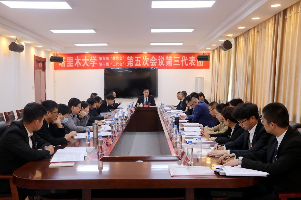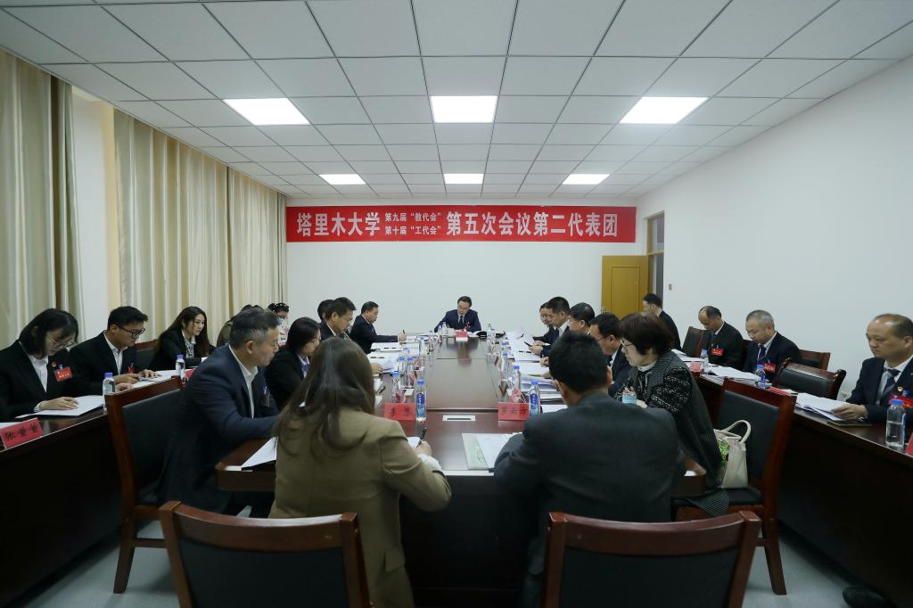 3月31日上午,塔里木大学第九届“教代会”暨第十届“工代会”第五次会议开幕式结束后,全体代表、列席代表、特邀人员分成7个代表团,紧紧围绕《学校工作报告(审议稿)》、《学校财务工作报告(审议稿)》、《学校提案工作报告(审议稿)》、《学校工会工作报告(审议稿)》、《学校工会经费审查报告(审议稿)》、《“十四五”规划〈纲要〉主要指标和重点专栏调整方案》(审议稿)(书面)进行了深入热烈的讨论。校领导分别参加各讨论组讨论。