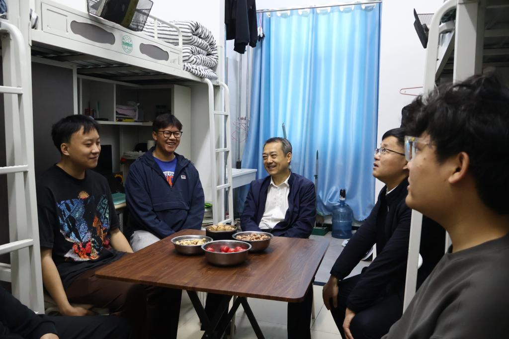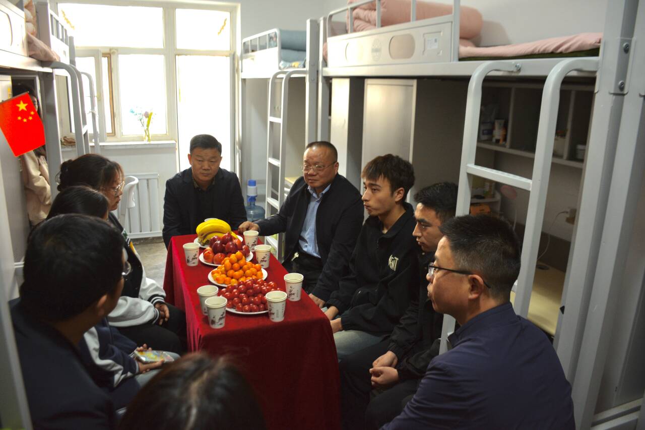 随后,校领导来到校本部、新校区(东扩区)学生宿舍,与“三进两联一交友”学生围坐在一起,向他们致以节日的问候和美好的祝愿,询问同学们的思想、学习、生活等情况。希望同学们树立远大理想,提升思想境界,热爱学习、热爱读书、热爱生活、热爱实践,做有理想、敢担当、能吃苦、肯奋斗的新时代胡杨青年。