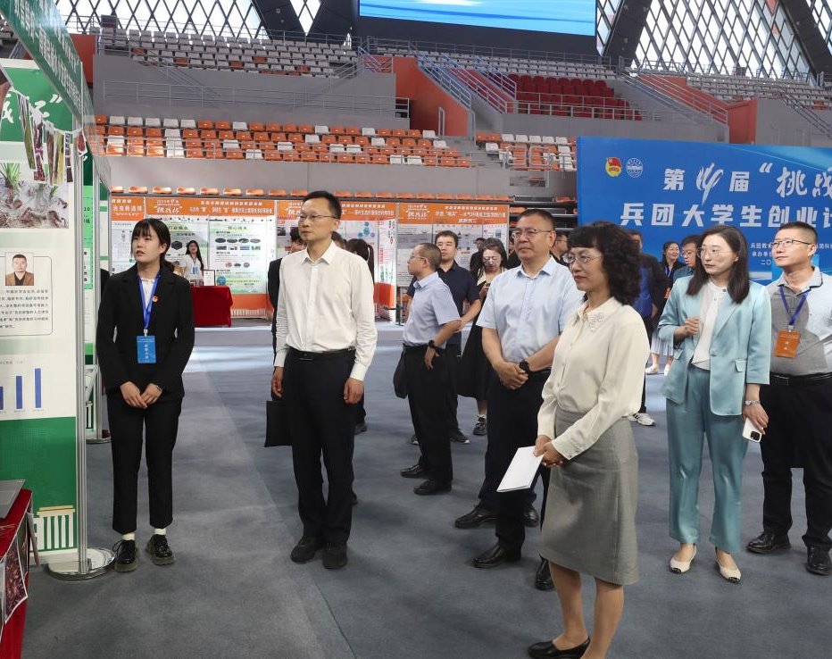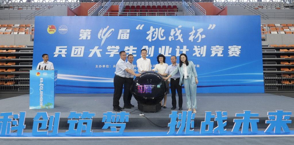塔里木大学党委书记张爱萍,兵团团委书记马智群,兵团教育局党组成员、副局长赵首辰,兵团人社局党组成员、副局长韩永江,兵团科技局党组成员、科协专职副主席吕学强,兵团团委副书记高妍,共同启动“第十四届‘挑战杯’兵团大学生创业计划竞赛”。