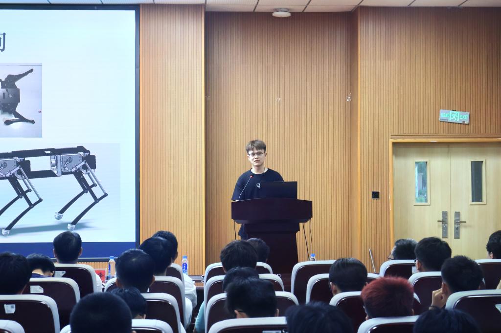 典礼上,靳传斌、郭鹏达等5位第一届机器人创新实验班优秀学员作了学习经验分享。