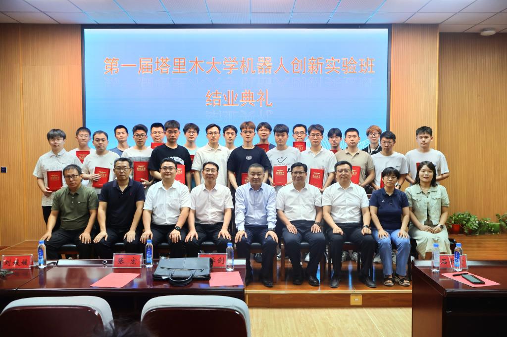 石长青为第一届机器人创新实验班的同学们颁发了结业证书。对26名实验班学生如期结业表示祝贺,对指导教师的辛勤付出和实验班取得的喜人成果表示肯定。希望继续构建“专业+企业+项目”嵌入式协同育人机制,不断拓展创新人才培养模式,培养适合区域经济社会发展的应用型人才。希望第二届创新实验班学员牢记塔大校训,发扬胡杨精神,不断提升综合能力,以一流成绩为母校增光添彩。