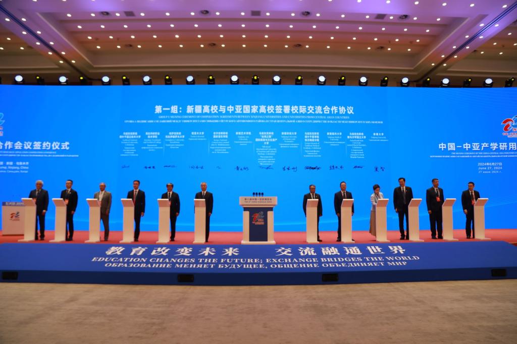 签约仪式上,新疆高校与中亚国家高校签署了14份校际交流合作协议。塔里木大学与哈萨克斯坦托拉伊赫罗夫大学签署了校际合作协议。两校将在学生培养、师资建设、科研攻关等方面加强交流合作。