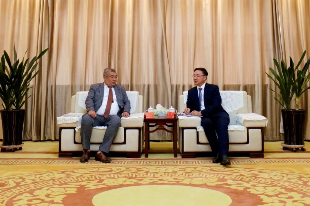 闫祥林与沙姆希丁·阿尔赞·斯迈洛维奇一行在行政楼四号洽谈室进行了会见,介绍了学校有关情况,希望两校聚焦“一带一路”高质量建设,在科技攻关、教师培训、学生交流等领域加强交流合作。