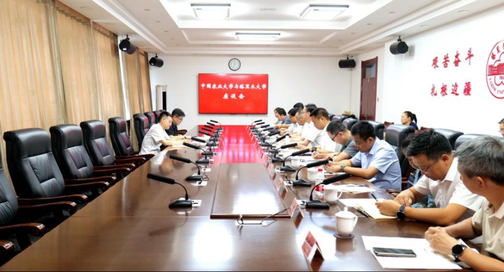 闫祥林与田见晖在行政楼四号洽谈室进行了会见,感谢中国农业大学作为团队式对口支援塔大组长单位,协调各支援高校对我校的无私援助和鼎力支持。希望中国农业大学继续发挥优势、持续推进对口支援,在人才队伍、平台建设等方面帮助塔大补短板、强弱项、提质量,助力兵团特点南疆特色一流大学建设。