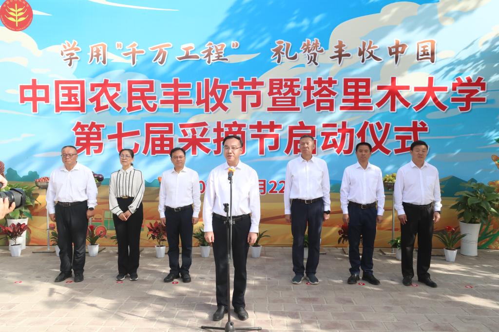 丰收喜讯醉飘香,枝头累累采摘忙。9月22日上午,“学用‘千万工程’ 礼赞丰收中国”中国农民丰收节暨塔里木大学第七届采摘节,先后分别在校医院门前、一师十团苗木基地、南疆产教融合现代农业实训基地举办。