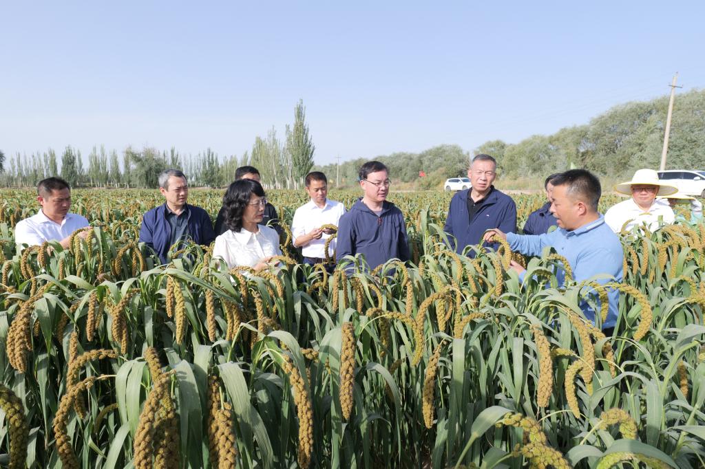 在南疆产教融合现代农业实训基地,张爱萍介绍了南疆产教融合现代农业实训基地建设情况,肯定了全校师生的不懈努力与辛勤付出。希望基地充分发挥示范作用,促进科技成果转化,切实将科研成果转化为南疆各族职工群众增收致富的动力,不断增强各族百姓的获得感幸福感。