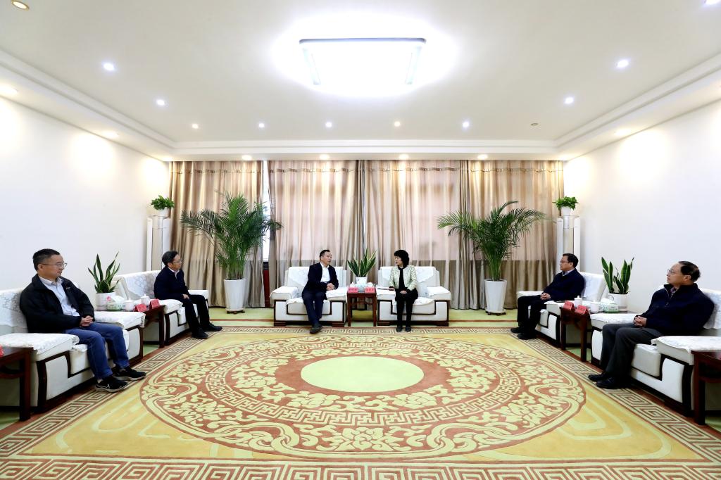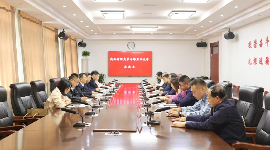 10月14日,武汉纺织大学党委副书记黄国辅一行来校,与我校党委书记张爱萍、党委常委、副校长林松涛等领导,在行政楼四号洽谈室进行深入交流。