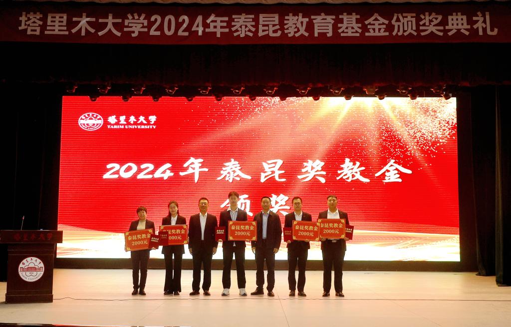 程建斌宣读了塔里木大学2024年泰昆奖教金获奖名单、塔里木大学2023-2024学年泰昆奖学金获奖名单、泰昆助学金获奖名单。与会领导为奖教金、奖学金获得师生进行了颁奖。