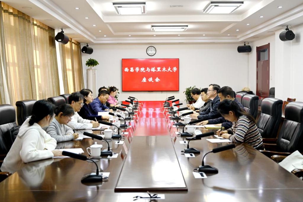 双方围绕有关合作事宜展开深入交流探讨。会前,大家共同观看了塔里木大学、西昌学院宣传片。