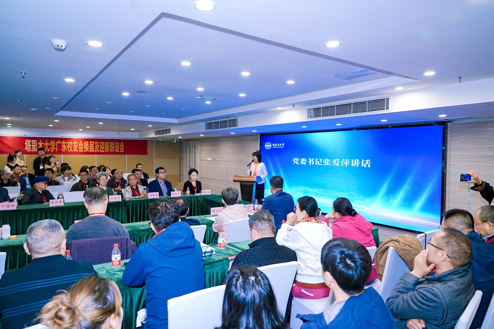 塔里木大学党委书记张爱萍,原党委书记赵光辉,党委常委、副校长张宏荣出席。广东校友会第一届、第二届理事会成员、塔大校友们欢聚一堂,感念母校恩情,共话未来发展。会议由兽医87届校友蒋红霞主持,在广州市天河区天娱广场东塔12楼会议室举行。