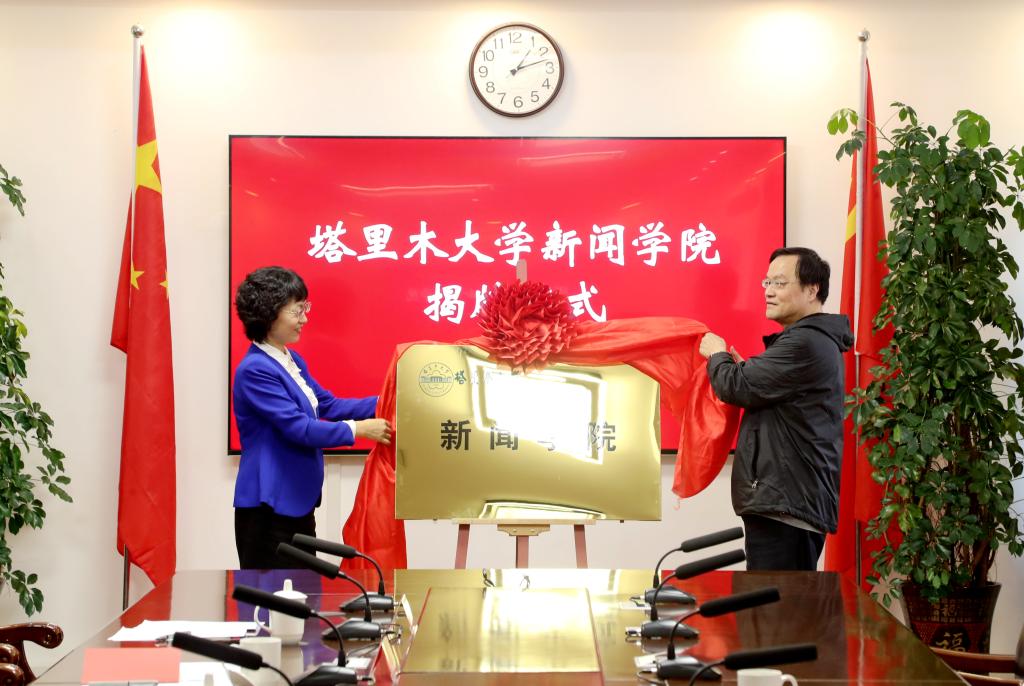 3月3日上午,塔里木大学举行新闻学院揭牌仪式。兵团党委宣传部副部长张富强,塔里木大学党委书记张爱萍出席并讲话。仪式由塔里木大学党委常委、副校长、宣传部部长王成涛主持,在行政楼315会议室举行。