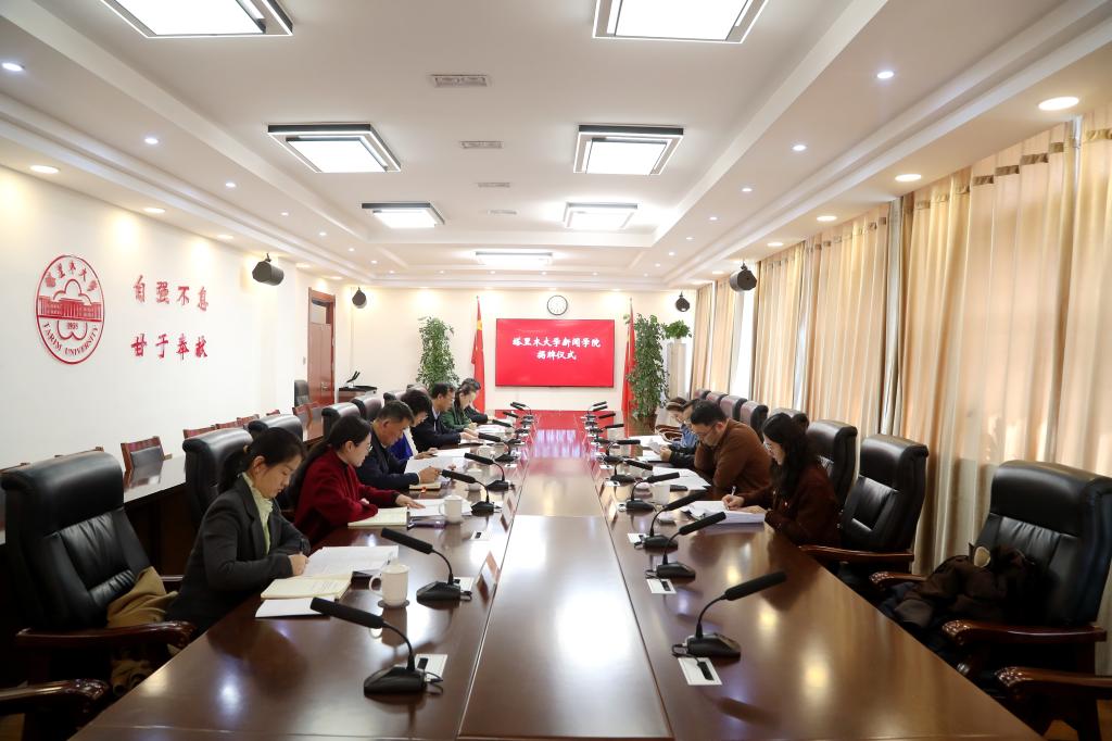 学院领导从学院机构设置、评估材料梳理、工作任务落实这三个方面,简要汇报了目前新闻学院建设情况。
