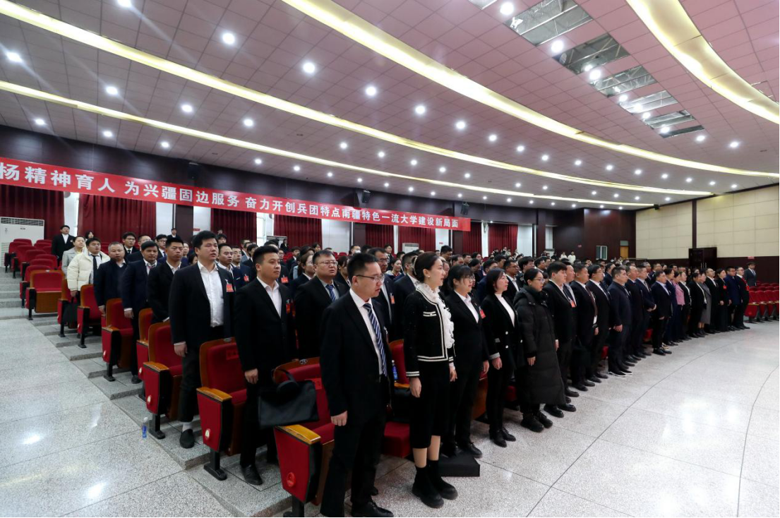 她强调,兵团党委的关怀支持,为建设兵团特点南疆特色一流大学提供了政策机遇、注入了工作动力。她提出,聚力推进一流大学建设,我们要聚力实现一流人才培养,要聚力推进一流学科建设,要聚力争创一流科学研究,要聚力打造一流师资队伍,要聚力加强一流服务管理,要聚力提供一流社会服务,要聚力培养一流校园文化,要聚力推进一流开放办学,要聚力锻造一流纪律作风,要聚力塑造一流精神状态。